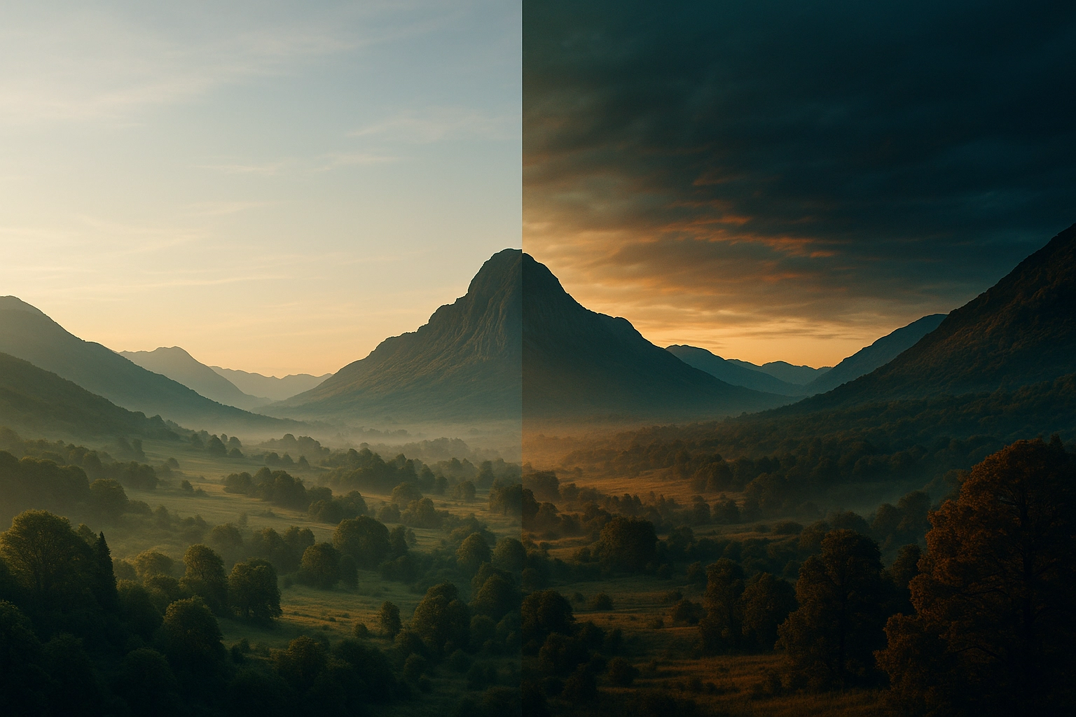 静的な風景なら、やや遅めのシャッターでディテールとダイナミックレンジを確保できます。